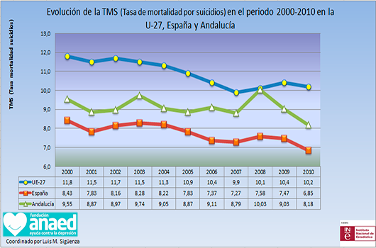 Mientras la española se sitúa en 2010 en 6.85 muertes no naturales por cada 100.000 habitantes, la tasa andaluza se eleva hasta 8.18 ocupando el 5º lugar entre las 17 comunidades autónomas y las 2 ciudades autónomas de Ceuta y Melilla.